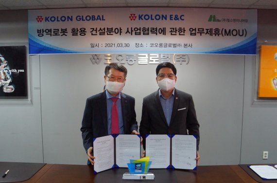 코오롱글로벌은 모듈러 건축 자회사인 코오롱이앤씨와 자율주행 기반 물류로봇전문기업 ㈜힐스엔지니어링이 건설분야에 방역로봇을 활용한 부가사업 개발 및 신제품 개발에 관한 포괄적 업무협약(MOU)을 체결했다고 31일 밝혔다.