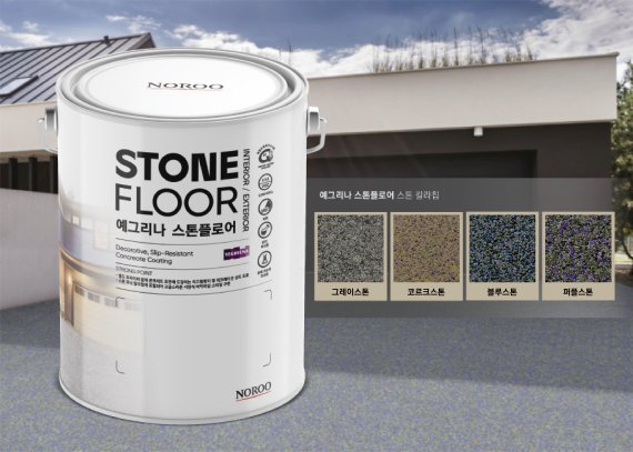 스톤무늬 컬러칩이 포함된 수용성 아크릴 페인트로 별도 프라이머 작업 없이 콘크리트면에 도장 가능하다. 실내마크를 획득한 실내외 겸용 제품으로 사계절 기후에 강하다. 표면 컬러칩 입자의 엠보 질감으로 미끄럼 방지 성능까지 더해져 반려동물과 함께 하는 외부공간에도 적용하기에 안성맞춤이다. 사용이 편리한 1액형 타입으로 비전문가도 간편하게 직접 시공이 가능하다.