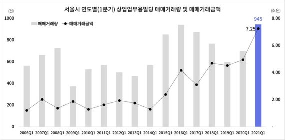 [파이낸셜뉴스] 종합부동산정보플랫폼 부동산플래닛은 올해 1·4분기 서울 상업 업무용 빌딩 거래는 총 945건, 매매거래 금액 7조2537억원을 기록했다고 29일 밝혔다.