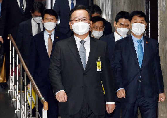 김부겸 국무총리 후보자가 6일 오전 서울 여의도 국회에서 열리는 인사청문회에 출석하고 있다.뉴스1