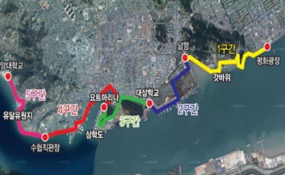 31일 목포시에 따르면 먼저 도보관광은 지난해 대한민국 4대 관광거점도시로 선정된 것이 기폭제가 돼 추진되고 있다. 대표적인 사업은 해변맛길 30리 조성사업으로, 평화광장에서 갓바위를 거쳐 삼학도를 지나 목포해양대까지 이어지는 총 연장 11.7㎞를 산책로, 데크 등으로 연결한다. 특히 △바닷가 미술관길 △환경생태길 △가족나들이길 △개항역사길 △젊은 연인의길 등 5개 구간으로 나눠 각각 특색있는 길을 조성한다. 시는 내년 완공을 목표로 올해는 옛 수협에서부터 해양대 구간의 연결 사업을 추진 중이다.