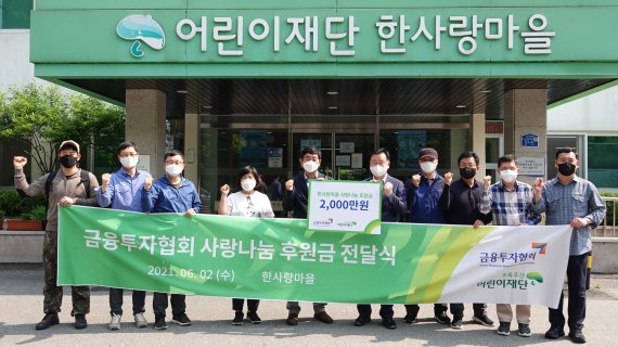 [파이낸셜뉴스]금융투자협회는 2일 경기도 광주 중증장애인 생활시설인 초록우산 어린이재단 한사랑마을에서 봉사활동을 실시하고 기부금 2000만원을 전달했다고 밝혔다.