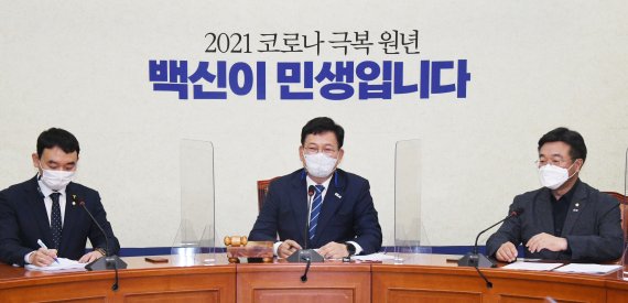 송영길 더불어민주당 대표가 9일 국회에서 열린 최고위원회의에서 모두발언을 하고 있다. 사진=뉴스1