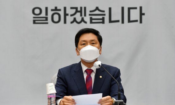 김기현 국민의힘 당 대표 권한대행 겸 원내대표가 11일 오전 서울 여의도 국회에서 열린 원내대책회의에서 모두발언을 하고 있다. 2021.6.11/뉴스1 © News1 오대일 기자 /사진=뉴스1