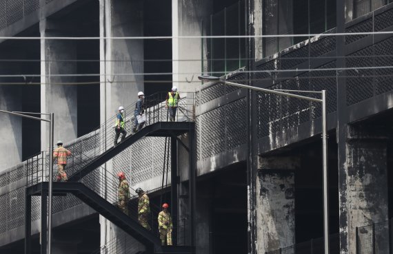21일 오후 경기도 이천시 마장면 쿠팡 덕평물류센터 화재현장에서 소방대원들과 외부 전문가들이 건물 구조 안전진단을 하고 있다. 2021.6.21/뉴스1 © News1 김영운 기자 /사진=뉴스1
