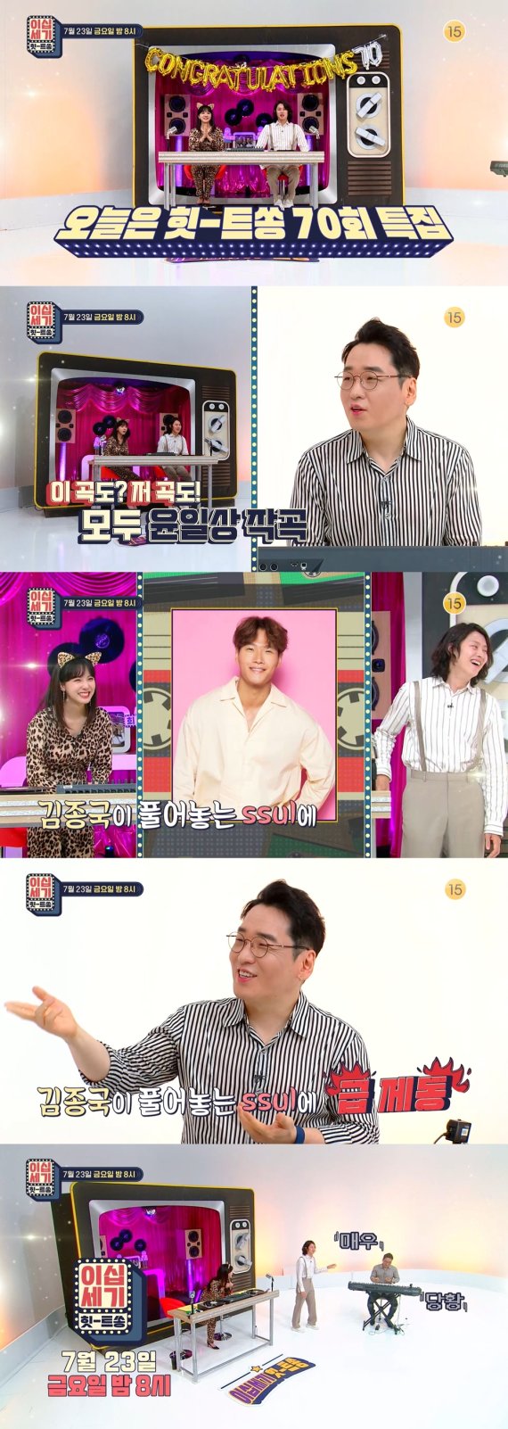 180만 구독자에 빛나는 헬스 유튜버이자 90년대를 사로잡은 터보 김종국과의 전화 연결 코너가 마련된 것. 훈훈한 추억 회상부터 윤일상의 당황을 부른 특별한 에피소드들이 시청자들을 기다리고 있다.이밖에도 '번외 차트'를 통해 윤일상의 '저작권 효자효녀곡 TOP 3'가 베일을 벗을 전망. 수많은 명곡 중에서도 윤일상을 따뜻하게 만들어준 '역대급 힛트쏭'들은 무엇일지도 호기심을 자극한다.'70회 특집! 제작진 PICK! 윤일상 댄스 힛트쏭' 특집은 오늘(23일) 밤 8시 KBS Joy '힛트쏭'에서 확인할 수 있다./slee_star@fnnews.com 이설 기자 사진=KBS Joy '이십세기 힛트쏭' 예고