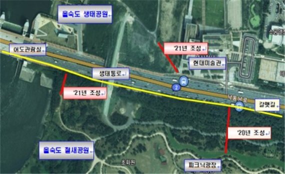 최근 부산현대미술관과 을숙도 철새공원을 찾는 방문객이 많이 증가했지만 을숙도 서측 낙동가람끝공원(어도관람실)과 부산현대미술관, 을숙도 철새공원을 잇는 연결로가 부족해 방문객들은 그동안 숲길을 우회해야하는 불편함이 있었다.