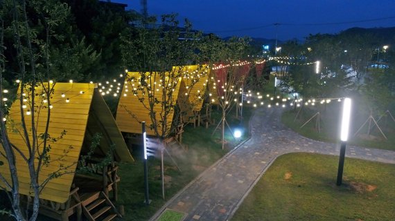 오두막 15개와 쿨링포그(안개 분무기) 12개, 길이 25m의 집라인 등을 갖춘 공원은 오는 27일 정식 개장한다.