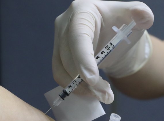 지난달 27일 오후 서울 동작구 사당종합체육관 코로나19 예방접종센터에서 대상자가 접종을 하고 있다. 뉴시스 제공.