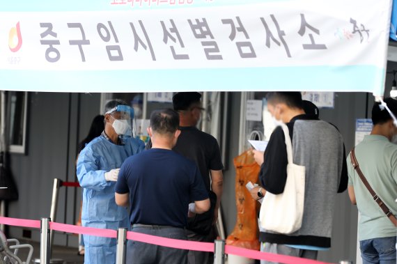 (서울=뉴스1) 이승배 기자 = 질병관리청 중앙방역대책본부가 14일 0시 기준 신종 코로나바이러스 감염증(코로나19) 신규 확진자가 1,497명 발생했다고 밝혔다. 70일째 네 자릿수 확진자를 기록하는 가운데 수도권은 이날도 국내 확진자 가운데 75%가 넘는 비중을 차지하며 확산세를 이어가고 있다. 14일 오전 서울 중구 서울역 광장에 마련된 신종 코로나바이러스 감염증(코로나19) 선별검사소를 찾은 시민들이 검사를 위해 줄 서 있다. 2021.9.14/뉴스1 /사진=뉴스1화상