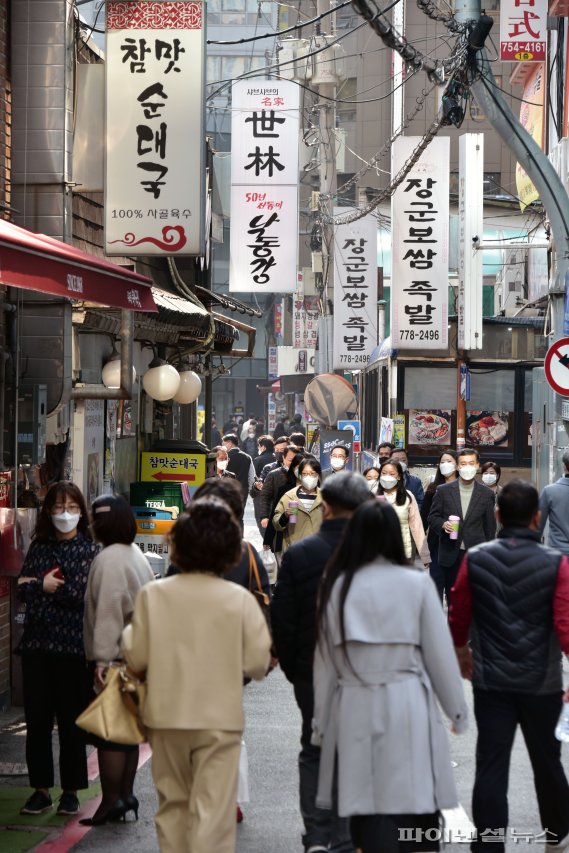 단계적 일상회복(위드 코로나)가 시행된 1일 서울의 한 식당가가 시민들로 붐비고 있다. 사진=서동일 기자