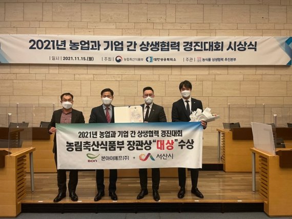 이 상은 ‘2021 농업과 기업 간 상생협력 경진대회’ 최고상으로, 농식품 부가가치 창출과 산업 발전에 긍정적 영향을 준 우수 기업으로 평가받아 수상하게 됐다.