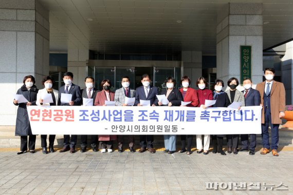 안양시의원 21인 모두가 연현공원 조성사업 조속 재개 촉구 건의안에 서명 처리하고, 이번 사업이 원활하게 추진될 수 있도록 집행부서에 촉구하는 시간을 가졌다.
