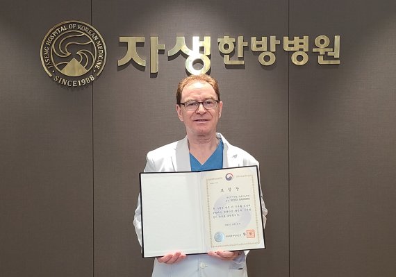 3일 자생한방병원 로이어 원장이 문화체육관광부 장관 표창을 수여 받고 기념촬영을 하고 있다. 자생한방병원 제공.