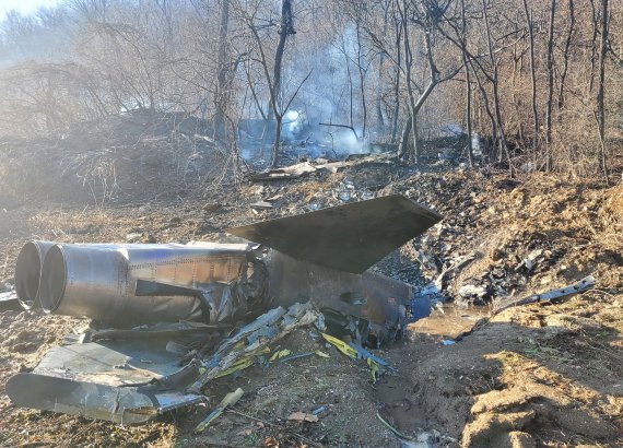 11일 오후 1시 44분께 경기 화성시 정남면 관항리 태봉산 일원에 F-5E 전투기 1대가 추락했다. 사진은 전투기 잔해. 사진=뉴시스