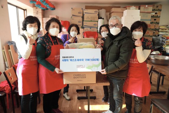 노인 무료 급식소에 항균 마스크 파우치 1000개 기부