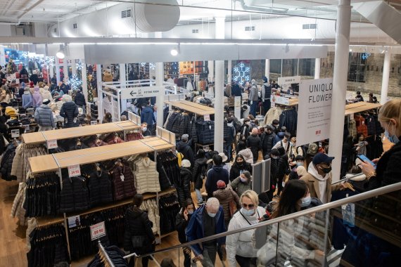 미국의 지난해 온라인 매출이 또 다시 사상최대를 기록한 것으로 나타났다. 지난해 11월 26일(현지시간) 블랙프라이데이를 맞아 뉴욕 맨해튼 의류상가가 쇼핑객들로 붐비고 있다. 로이터뉴스1