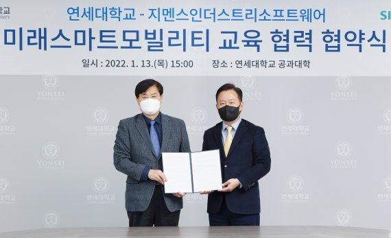 [파이낸셜뉴스]연세대와 지멘스는 지난 13일 스마트 모빌리티 전문가 양성 협력에 관한 양해각서(MOU)를 체결했다고 14일 밝혔다. 양 기관은 지멘스의 소프트웨어 중심 교육 프로그램 개발 및 적용을 위한 소프트웨어 솔루션에 대한 상호 지원과 협력을 통해 한국 산업 발전에 필요한 인재를 양성하기 위해 함께 노력하기로 합의했다.