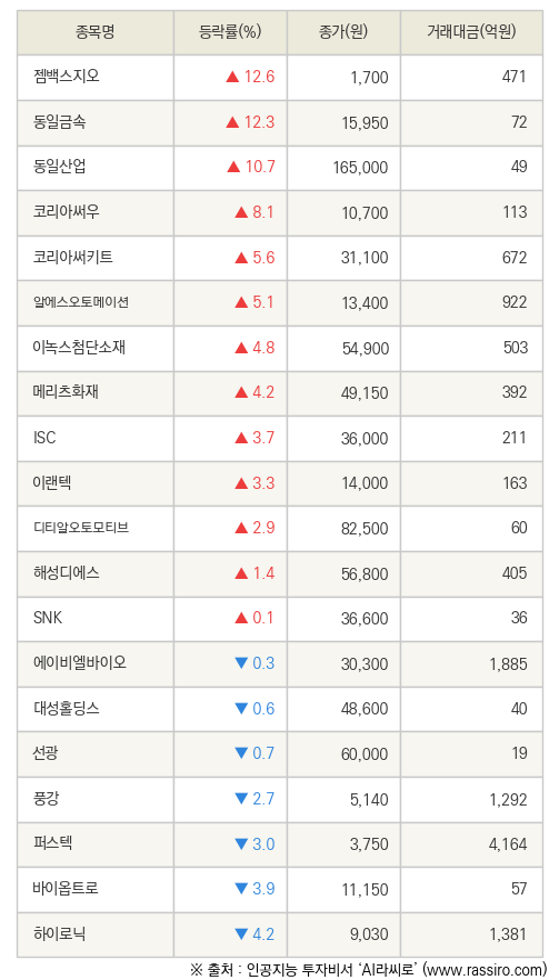 [fnRASSI]젬백스지오, 동일금속 등 20종목 52주 신고가 경신