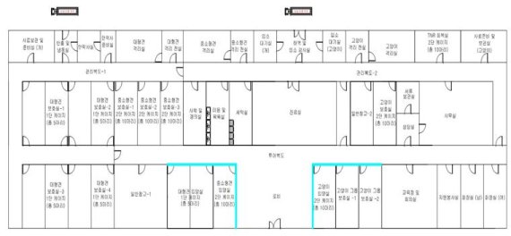 동물보호센터 시설 설계 안내서에 포함된 평면도면. 실내형 100마리 기준.