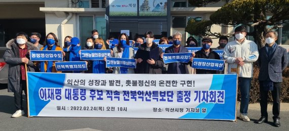 이재명 대통령 후보 직속 전북익산특보단이 24일 익산시청 앞에서 출정식을 열었다. /사진=뉴시스