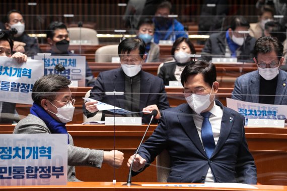 민주당은 이날 밤 국회에서 긴급 의원총회를 열어 이같은 내용의 국민통합 정치개혁안을 당론으로 결의했다고 신현영 당 원내대변인이 전했다.
