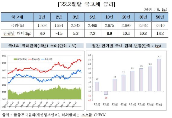 금투협 관계자는 “국가 신용등급 대비 국채 금리가 비교적 높은데다, 각국 통화정책 정상화와 높은 소비자물가 상승률에 따른 글로벌 금리 상승, 러시아의 우크라이나 침공 등으로 국내 채권 금리가 뛴 영향”이라고 설명했다.