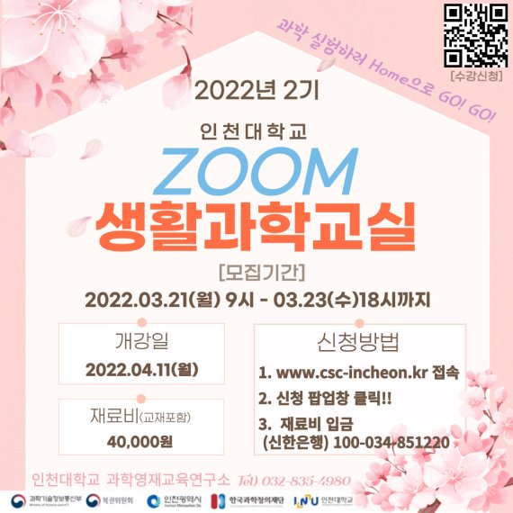 【파이낸셜뉴스 인천=한갑수 기자】 인천대학교 과학영재교육연구소는 과학문화의 확산과 대중화를 위해 ‘생활과학교실 2022년 2기 과정’에 참여할 수강생을 모집한다고 16일 밝혔다.