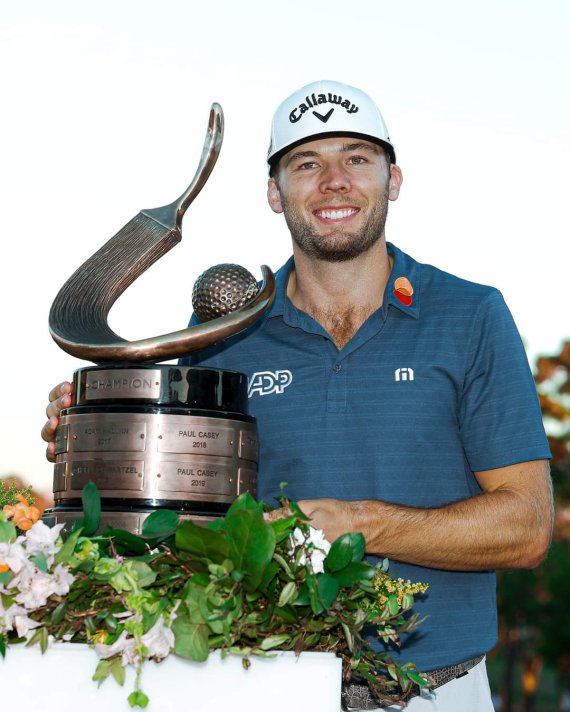 21일(한국시간) 미국 플로리다주 팜 하버의 이니스브룩 리조트 코퍼헤드 코스에서 열린 PGA투어 발스파 챔피언십에서 대회 2연패에 성공한 샘 번스가 우승 트로피를 들고 포즈를 취하고 있다. /사진=PGA투어 페이스북