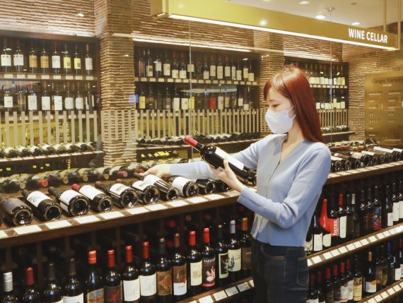 고객이 롯데백화점 본점 지하1층 주류 매장에서 '와인'을 구경하고 있다. 롯데백화점 제공.
