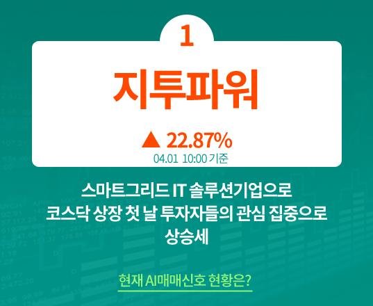 최적의 매매타이밍을 실시간으로 전송하여 투자자들에게 도움이 되고 있는 주식AI 라씨 매매비서가 오늘 분석한 인기검색종목은 지투파워(+22.87%), 아이오케이(+19.03%), 미래산업(+14.88%), 에스엠(+7.23%), 대한항공(+3.31%) 이었다.