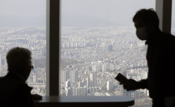 [서울=뉴시스] 고승민 기자 = 서울 송파구 롯데월드타워 서울스카이에서 바라본 서울시내 아파트 모습. 2022.03.29. kkssmm99@newsis.com /사진=뉴시스