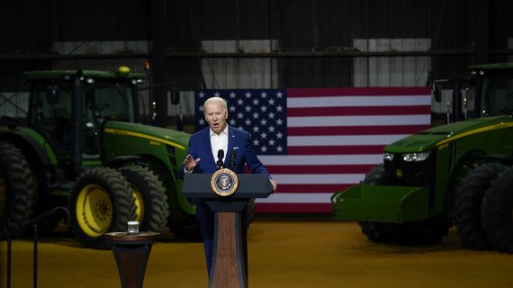 조 바이든 미국 대통령이 12일(현지시간) 미 아이오와주 멘로의 바이오 에탄올 공장에서 연설하고 있다.AP뉴시스