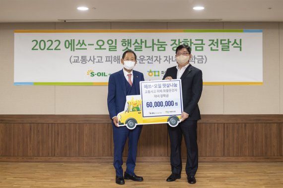 에쓰오일은 화물복지재단에 교통사고 피해 화물차 운전자 자녀를 위한 장학금 총 6000만원을 전달했다고 13일 밝혔다. 이번 지원금은 교통사고를 당한 화물차 운전자 자녀 약 20여명의 장학금으로 사용된다.