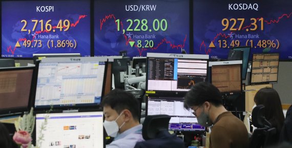 [파이낸셜뉴스] 한국은행이 기준금리를 올린 14일 코스피는 혼조세를 보였다. 기준금리 인상 소식에 장중 하락세로 돌아서기도 했으나 이후 낙폭을 회복했다. 14일 한국거래소에 따르면 코스피는 전 거래일보다 0.22p(0.01%) 오른 2716.71에 장을 마감했다.
