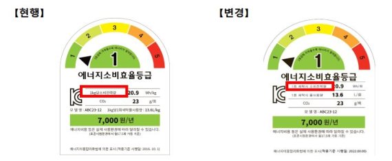 전기세탁기의 라벨 표시 현행 및 변경 안. /사진=뉴시스
