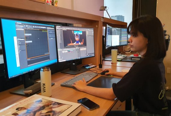 한국콘텐츠진흥원은 K-애니 제작 경쟁력 강화를 위해 ‘애니메이션 전문인력 양성사업’을 추진 중이며, 해당 사업을 통해 국내 애니메이션 기업 ㈜로커스에 취업한 김지윤 교육생이 드라마 ‘유미의 세포들’ 애니메이션 라이팅 작업을 하고 있다. /사진=한국콘텐츠진흥원
