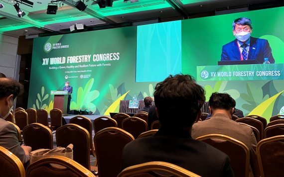 류광수 이사장이 4일 열린 제15차 세계산림총회(WFC) 부대행사에서 환영사를 하고 있다.