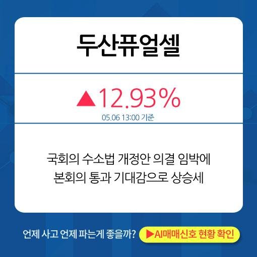 최적의 매매타이밍을 실시간으로 전송하여 투자자들에게 도움이 되고 있는 주식AI 라씨 매매비서가 오늘 분석한 오후장 급등종목은 에스퓨얼셀(+23.47%), 이루온(+14.98%), 대한전선(+13.08%), 두산퓨얼셀(+12.93%), 유니크(+8.25%) 이었다.