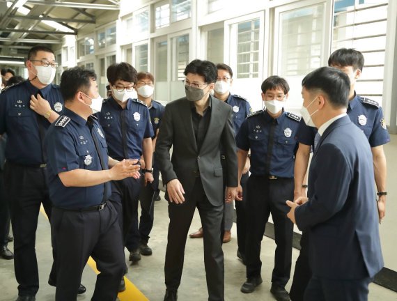 한 장관은 청주교도소에서 교정공무원을 만나 "현장 교정공무원이 다른 제복공무원에 비해 업무환경과 처우가 열악한 상황"이라며 "현장 교정공무원의 처우 개선은 수용자의 인권보장과 효율적인 수용자의 교정교화를 통해 결국은 국민의 이익을 지키기 위한 것"이라고 말했다.