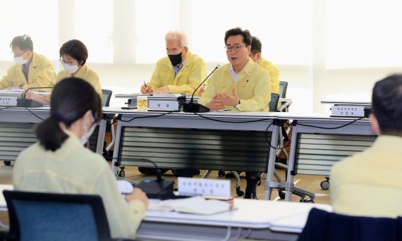 정황근 농식품부 장관이 여름철 재해 피해 최소화를 위해 유관기관과 점검 회의를 하고 있다.