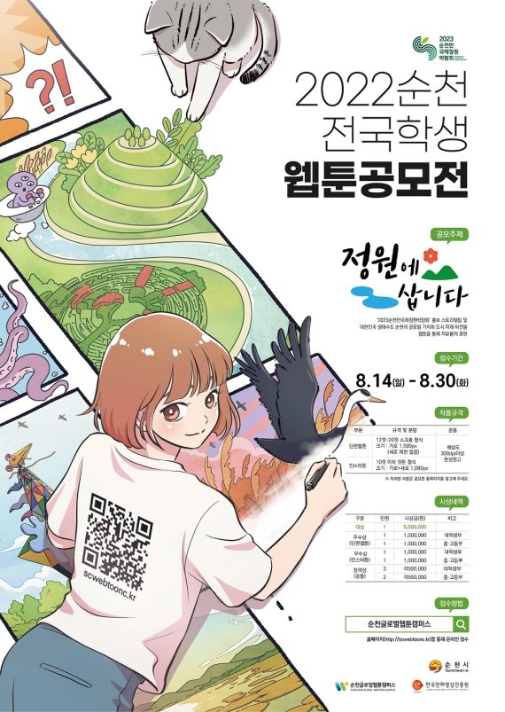 【파이낸셜뉴스 순천=황태종 기자】전남 순천시는 재능 있는 웹툰 인재를 발굴하기 위해 오는 8월 30일까지 '2022 순천 전국학생 웹툰공모전'을 개최한다고 밝혔다.