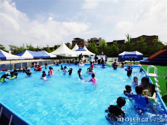간이수영장은 가로-세로 각각 10m-15m 넓이에 높이 0.8m로 매일 오전 10시부터 오후 5시까지 운영된다. 수영장 옆에는 슬라이드형 에어바운스가 설치돼 색다른 즐거움도 제공한다.