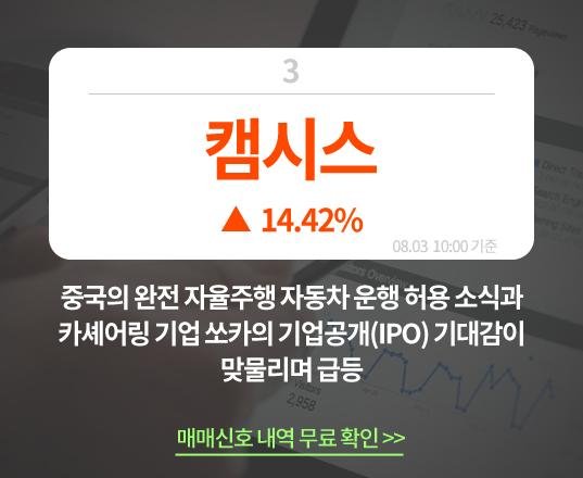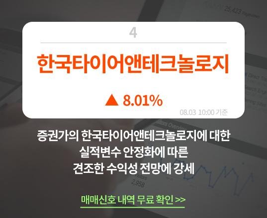 최적의 매매타이밍을 실시간으로 전송하여 투자자들에게 도움이 되고 있는 주식AI 라씨 매매비서가 오늘 분석한 인기검색종목은 크라운제과(+29.80%), 크라운해태홀딩스(+25.35%), 캠시스(+14.42%), 한국타이어앤테크놀로지(+8.01%), 하이브(+2.72%) 이었다.