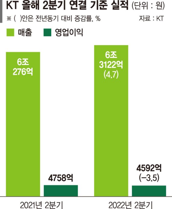 KT는 "인플레이션 등 대외환경 변화로 인한 비용 증가와 일회성 인건비 영향으로 2·4분기 영업이익이 전년동기대비 감소했으나, 디지코와 B2B 중심 성장과 그룹 포트폴리오 개편으로 사업 성장세가 이어졌다"고 전했다.