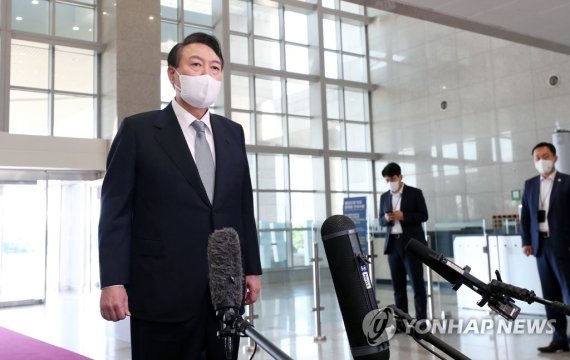 윤 대통령은 이날 용산 대통령실 출근길에 기자들과 만나 '이 전 대표가 결자해지란 말을 쓰며 갈등을 윤 대통령이 풀어야 한다고 한다'는 질문에 이같이 답했다.