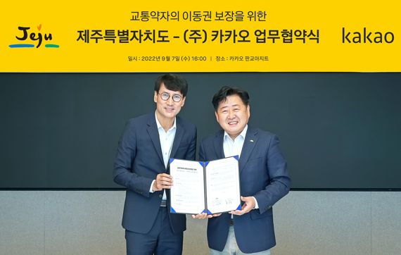 [파이낸셜뉴스] 카카오는 제주특별자치도(제주도)와 교통약자의 이동권 보장을 위한 업무협약(MOU)을 체결했다고 8일 밝혔다.