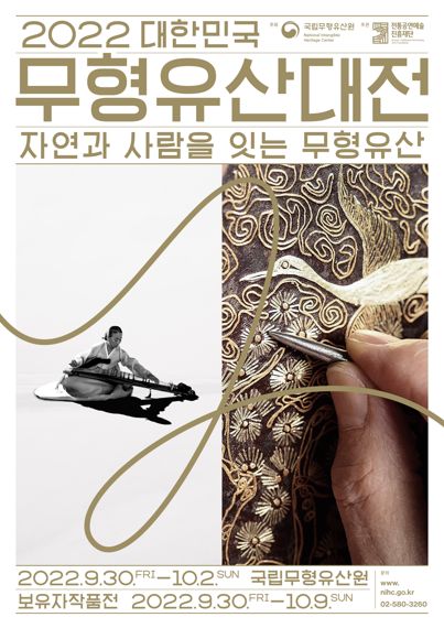 문화재청 국립무형유산원이 주최하고 전통공연예술진흥재단이 주관하는 '2022 대한민국 무형유산대전'이 오는 30일부터 10월 2일까지 전주에 있는 국립무형유산원에서 열린다.