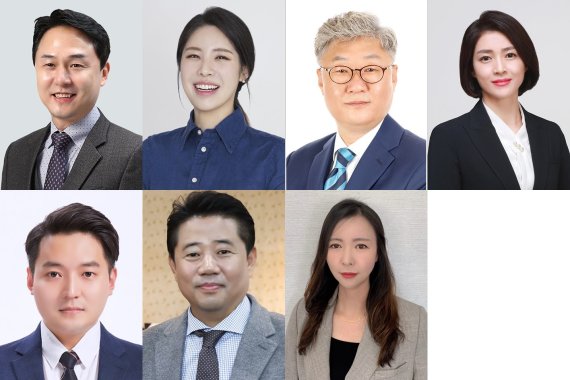 (윗줄 왼쪽부터) 한정수, 김슬지, 장연국, 오임선 대변인, (아래 왼쪽부터) 양정민, 백창민, 임지연 대변인. /사진=뉴시스