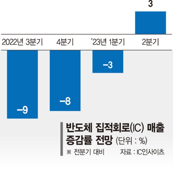 기관은 IC 매출이 내년 2·4분기(3%)부터 반등할 것으로 전망했다. IC인사이츠는 "역사적으로도 1970년대 중반 이후 IC 매출이 4분기 연속 하락한 사례가 없었다"고 설명했다.
